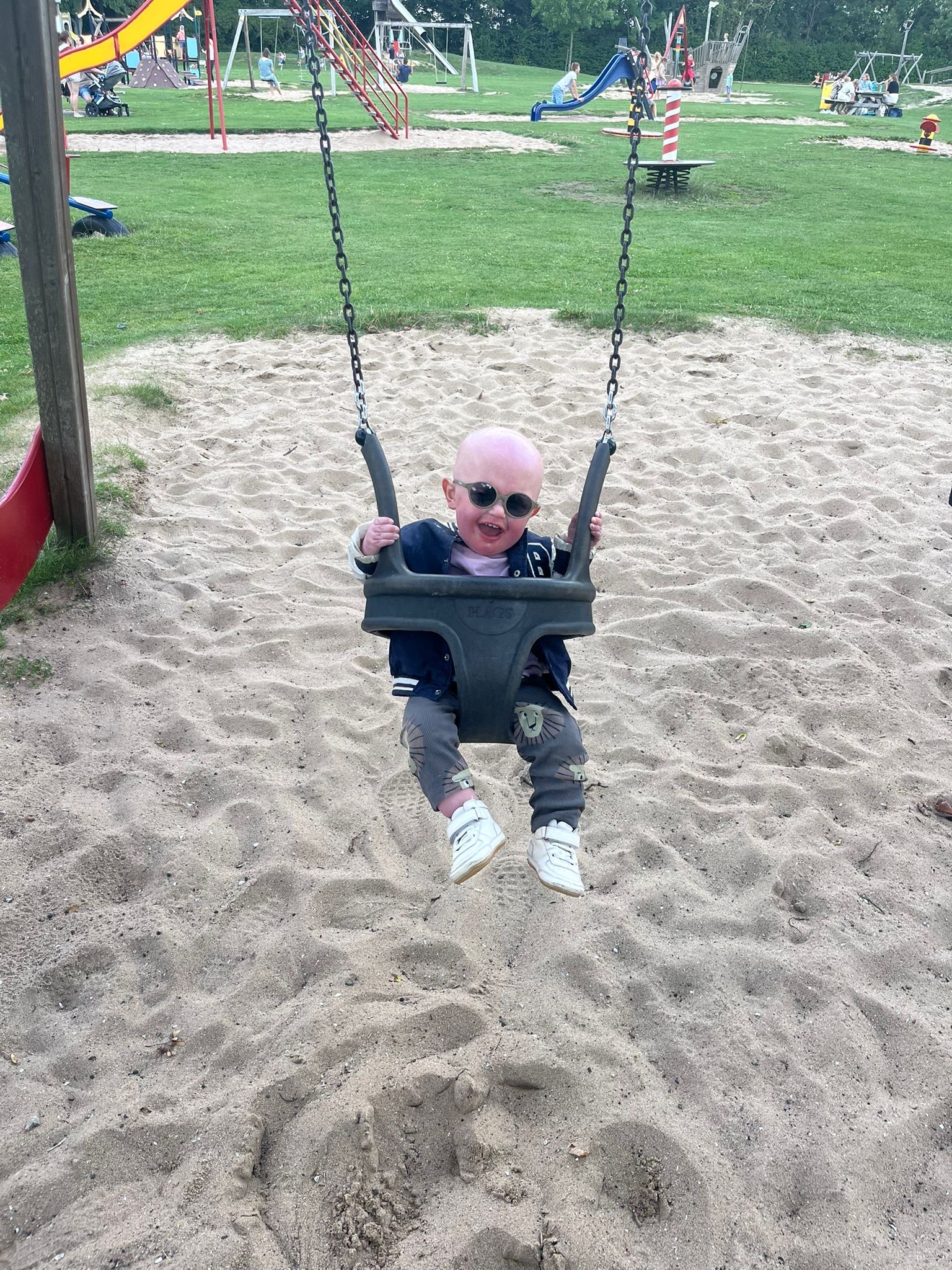 Wij zijn Sanne en Jeroen, ouders van Loek en zijn grote zus Liv. Toen Loek werd geboren schrokken we enorm: Loeks huid was felrood en schilferig. De eerste diagnose was ‘rode baby’. Pas na 9 maanden kregen we duidelijkheid: Keratosis Follicularis Spinuloza Decalvans (KFSD), een uiterst zeldzame huidaandoening. Loek heeft daardoor een droge kwetsbare huid die intensieve zorg nodig heeft, geen haargroei en last van fel licht.